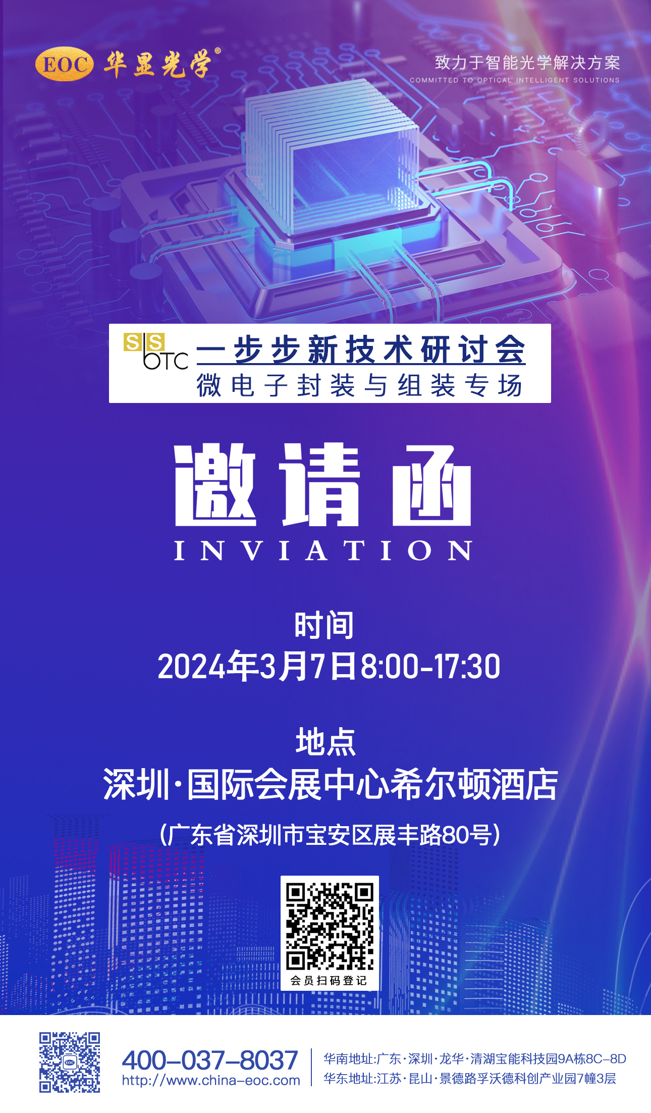 一步步新技術(shù)研討會2024全新啟航, 首站深圳,華顯光學(xué)儀器有限公司誠摯地邀請您參加3月7日深圳《微電子封裝與組裝專場》為主題,在深圳國際會展中心希爾頓酒店進行的專場研討會。詳解半導(dǎo)體與電子制造終端應(yīng)用市場、汽車電子高可靠性焊接解決方案、電子設(shè)計與制造能力等領(lǐng)域的提升方案。期待您的蒞臨指導(dǎo)。