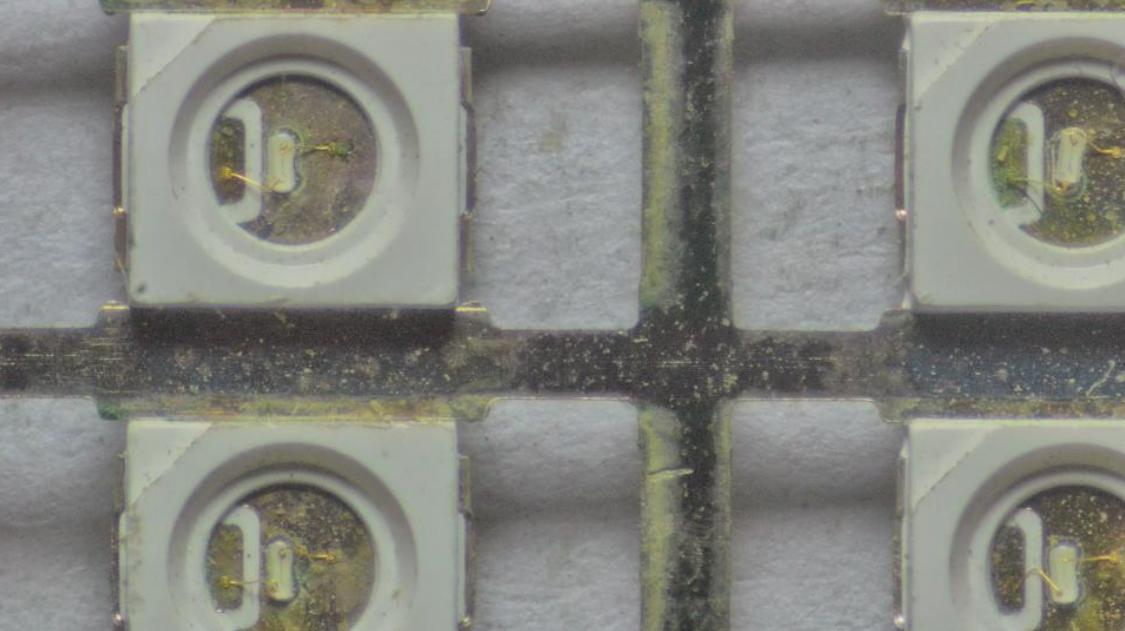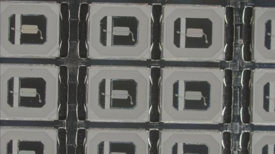 支架基板是LED芯片的重要組成部分,它是芯片與外界電路鏈接的橋梁,是芯片進(jìn)行保護(hù)和支撐,是芯片散熱的主要途徑。支架生產(chǎn)完成后,需要用顯微鏡放大進(jìn)行觀察,看是否已經(jīng)清洗干凈以及清洗后留下的劃痕等。