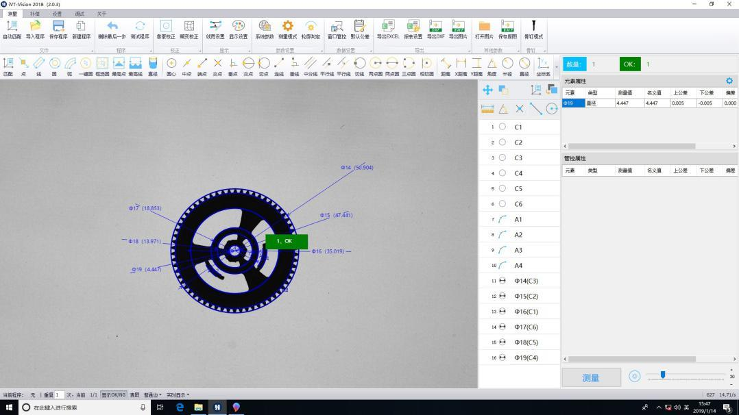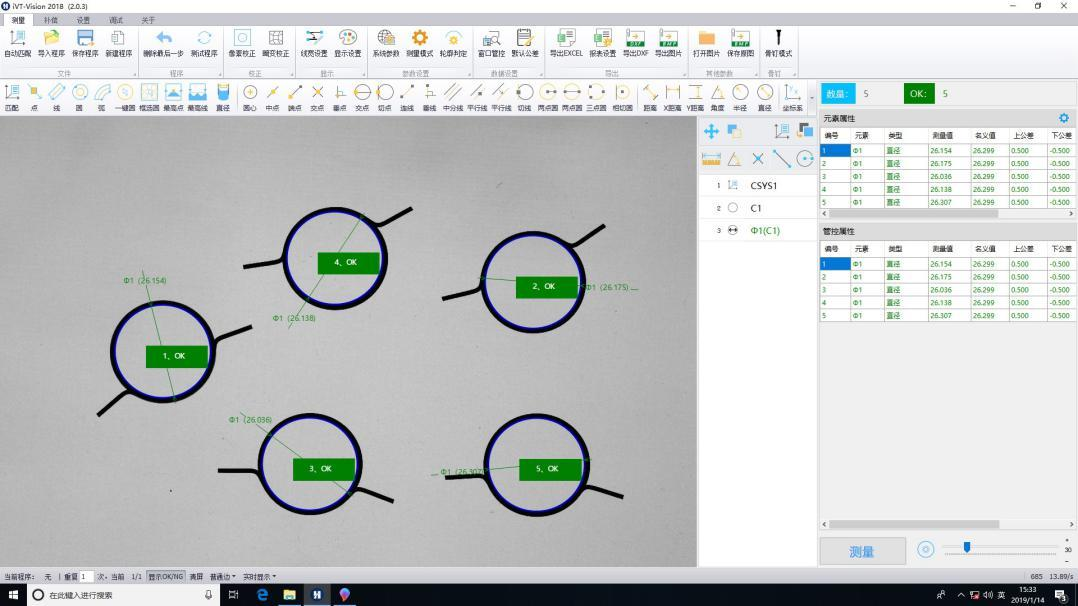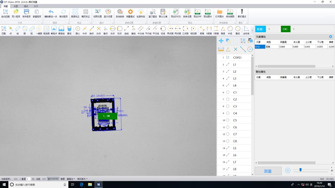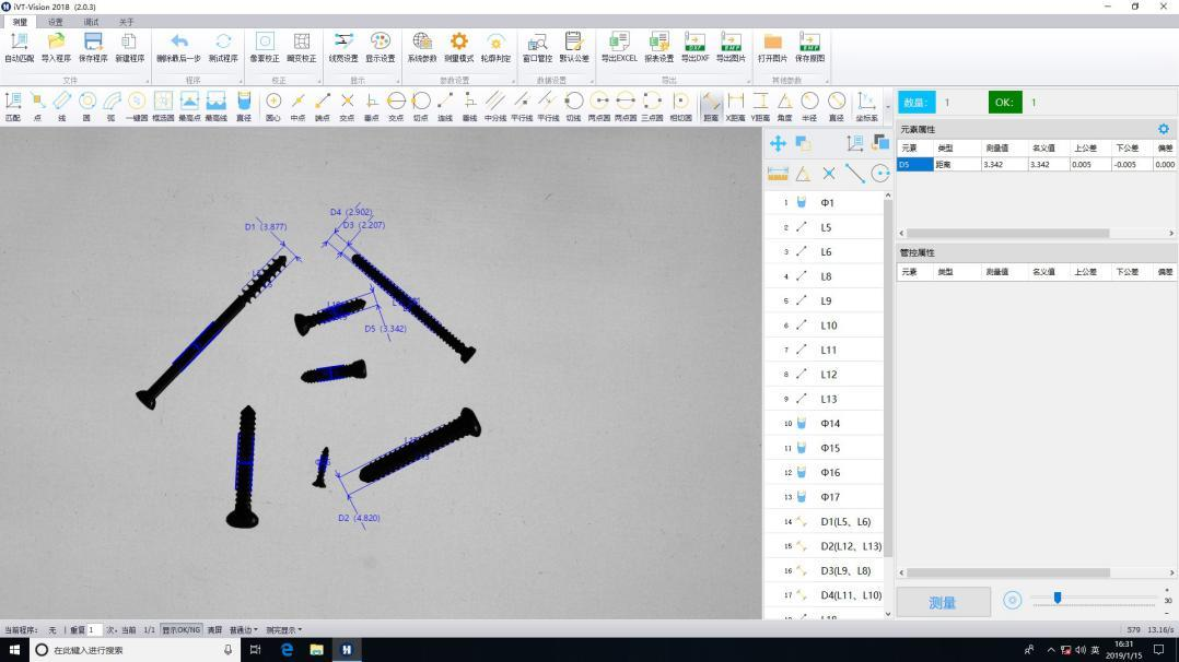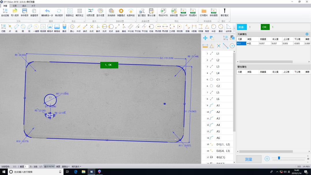 點(diǎn)、線、圓、圓弧、角度、點(diǎn)線距離、線線距離、圓圓距離等二維尺寸測量;