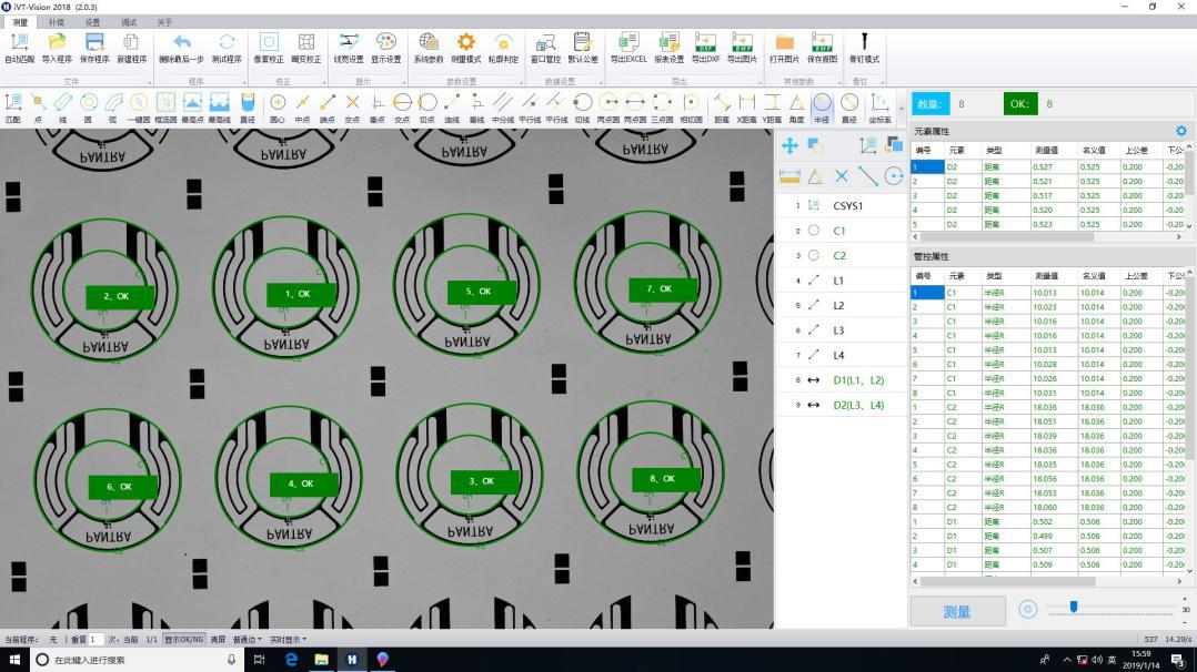 測量模式分為單工件測量、多工件測量,可實(shí)現(xiàn)一鍵自動搜索已設(shè)定測量模板,快速精確地進(jìn)行批量測量。