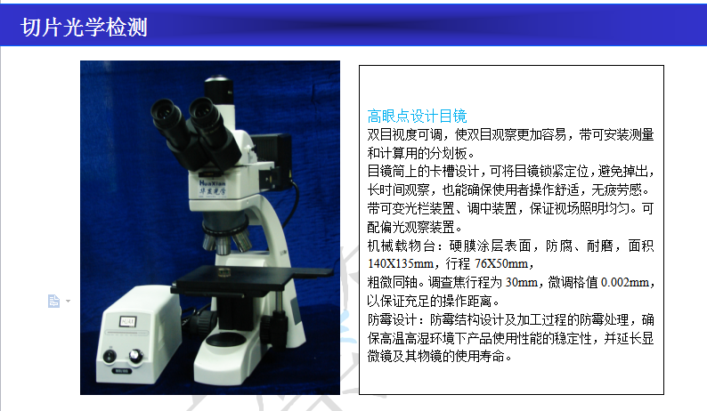 1、切片后的樣品常用立體顯微鏡或者金相測量顯微鏡觀察;