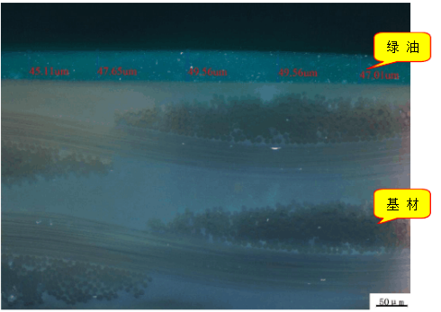 綠油層厚度測試圖片(200x)