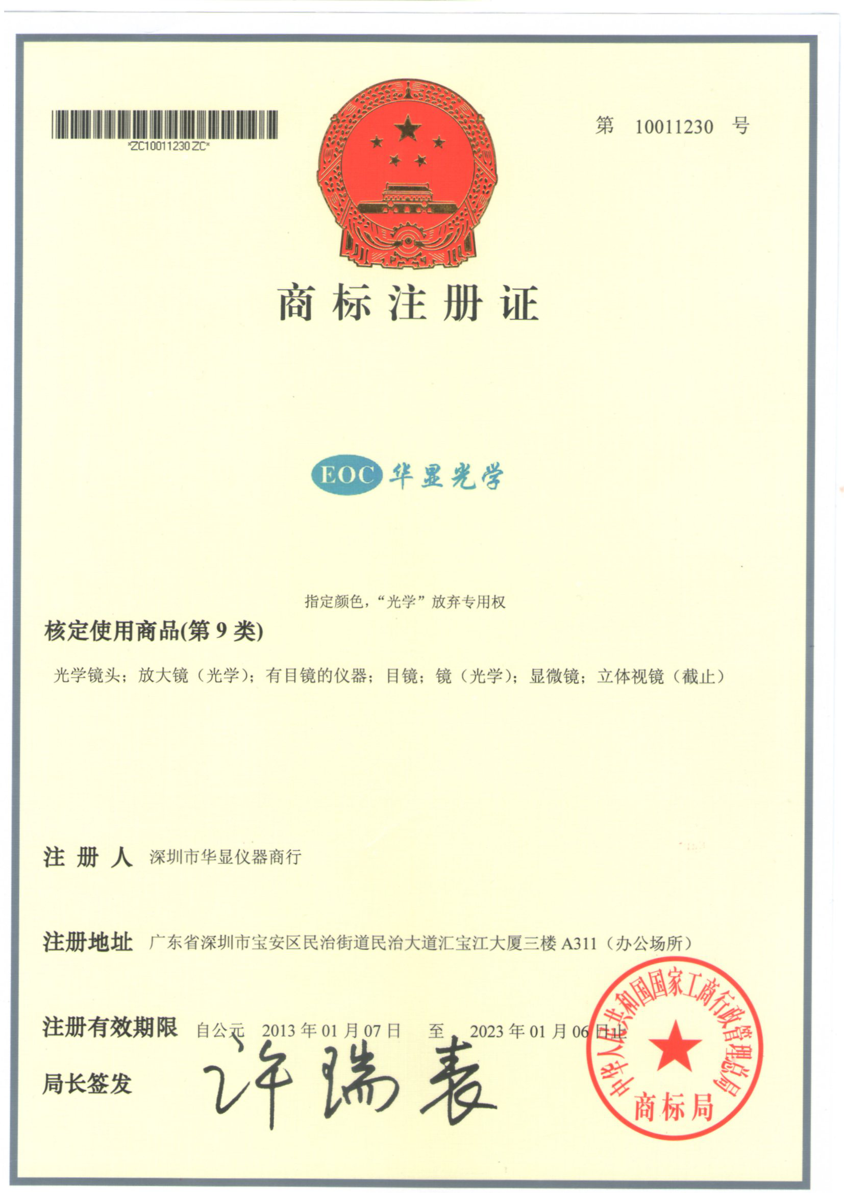 華顯商標(biāo)注冊(cè)證