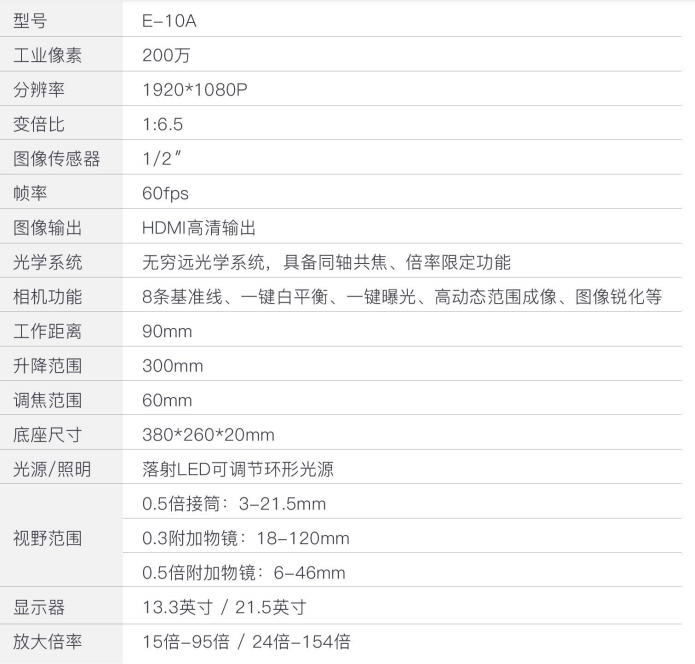 E-10A系列視頻顯微鏡采用無窮遠(yuǎn)光學(xué)系統(tǒng),該系列配備高景深、高物距鏡頭、高清工業(yè)相機(jī),
