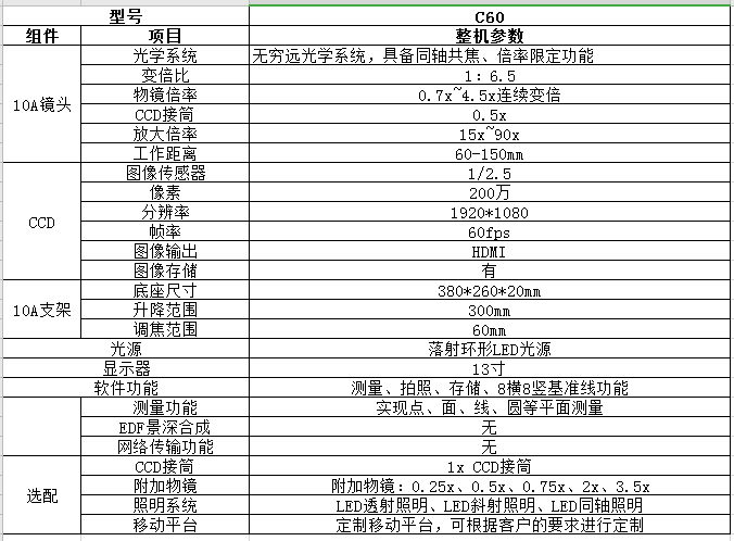 C60集成視頻顯微鏡廣泛應(yīng)用于量螺紋的節(jié)距、外徑、牙角、尺形及切削刀具等工件尺寸或外形