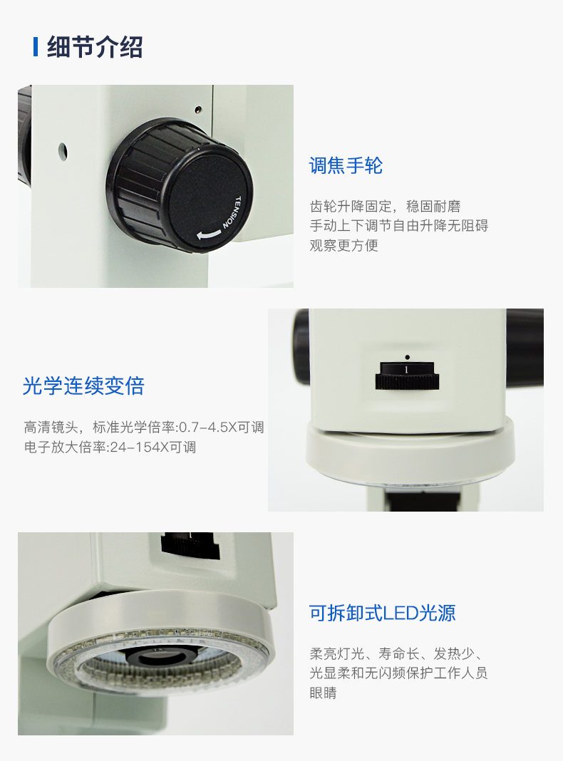 2, 一鍵開關(guān),支持無線鼠標(biāo)控制,傳統(tǒng)體視和視頻放大倍數(shù)皆可滿足;