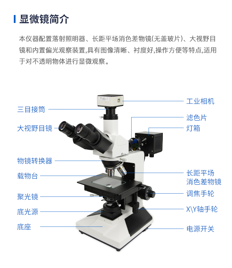 大視野目鏡和內(nèi)置偏光觀察裝置,具 有圖像清晰、襯度好,操作方便等特點(diǎn)。