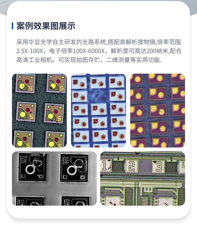 GT-100P 系列顯微鏡采用華顯光學(xué)自主研發(fā)的光路系統(tǒng)搭配高解析度物鏡,倍率范圍2.5x-100 X,