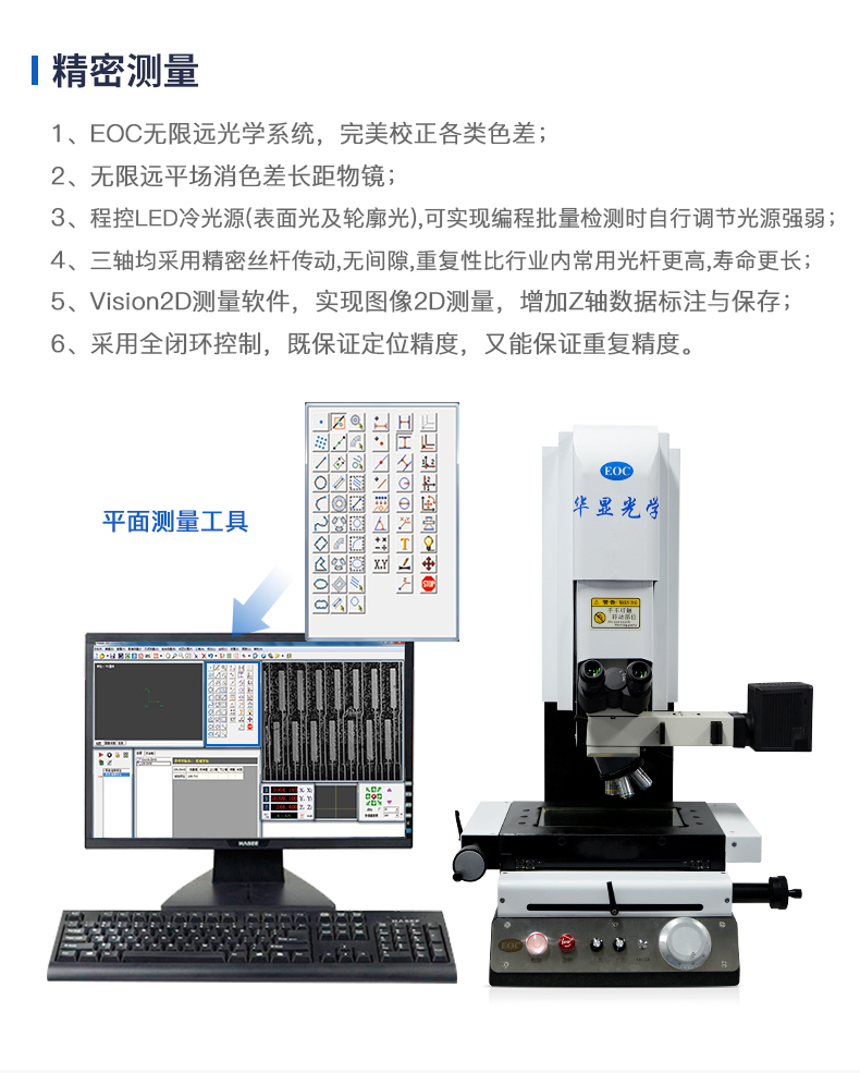 E系列工具顯微鏡具備手動/自動測量方式可選;自動測量可現(xiàn)自動測量及編程。