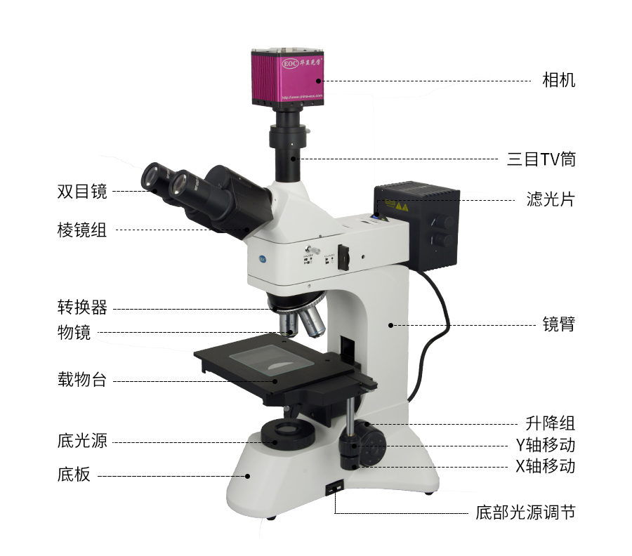 采用鹵素?zé)粽彰鳎炼瓤烧{(diào)),不僅能對通常的明視場觀察法,還能對偏光、