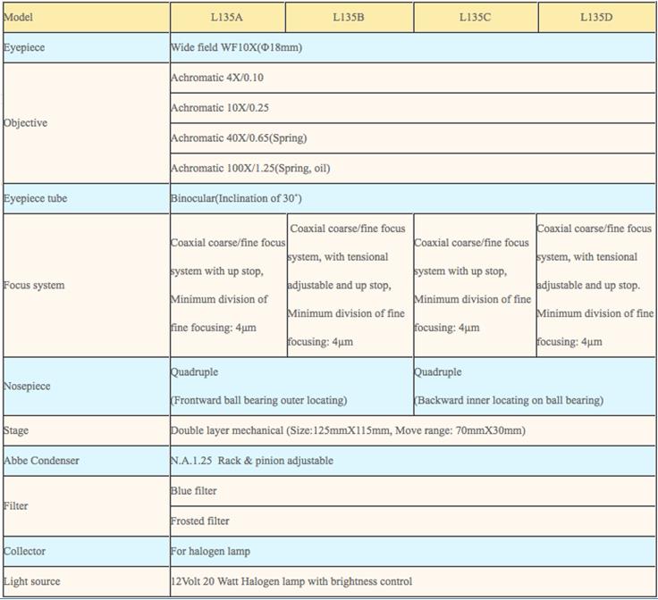 · L135 series biological microscopes are equipped