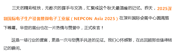 展會預告 | 華顯光學邀您共聚2025國際電子電路(深圳)展覽會(HKPCA Show)http://www.9et88.com/About2/show/251.html 尊敬的客戶與合作伙伴: