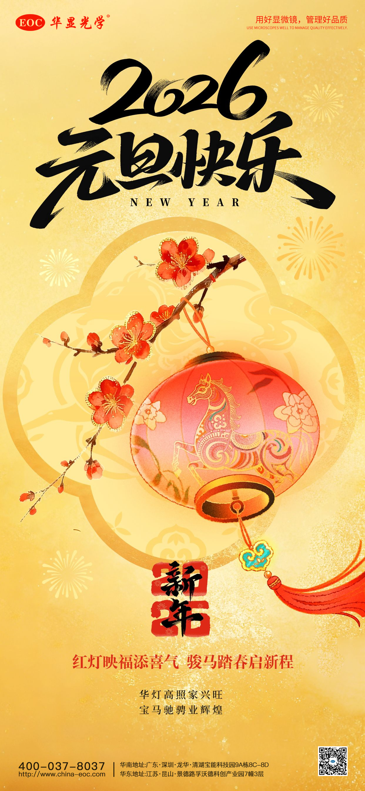 新元肇啟,萬象更新。當時光的指針劃過2025的最后一頁,我們懷著感恩與期待,迎來了充滿希望的2026年。在此辭舊迎新的美好時刻,深圳市華顯光學儀器有限公司向所有關心、支持我們的新老客戶,致以最誠摯的感謝和最美好的新年祝福!